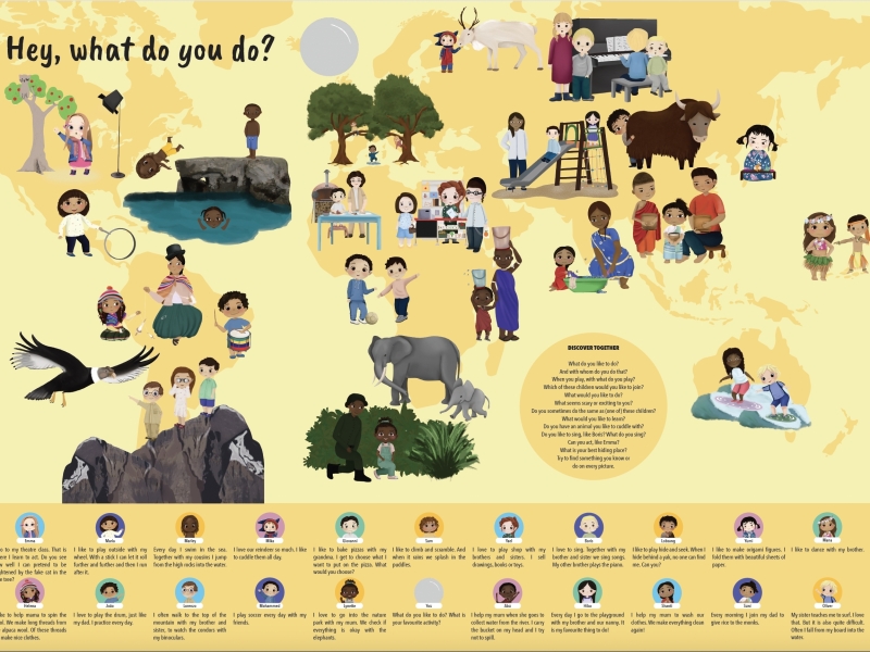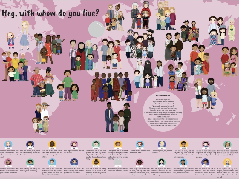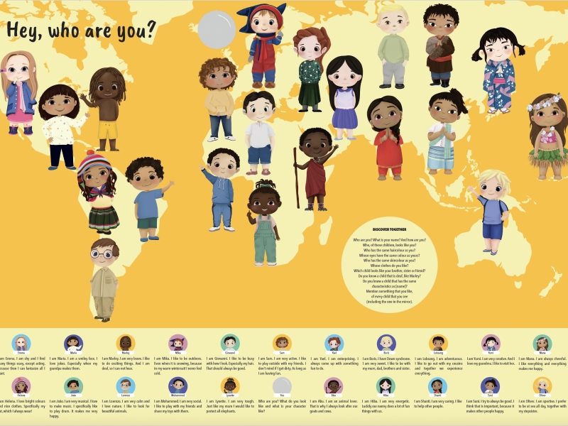Our colourful digital discovery book introduces children to the diversity of people and cultures, together with their 21 friends, that show them their lives and who answer 9 major question, every child asks, when they meet someone new.